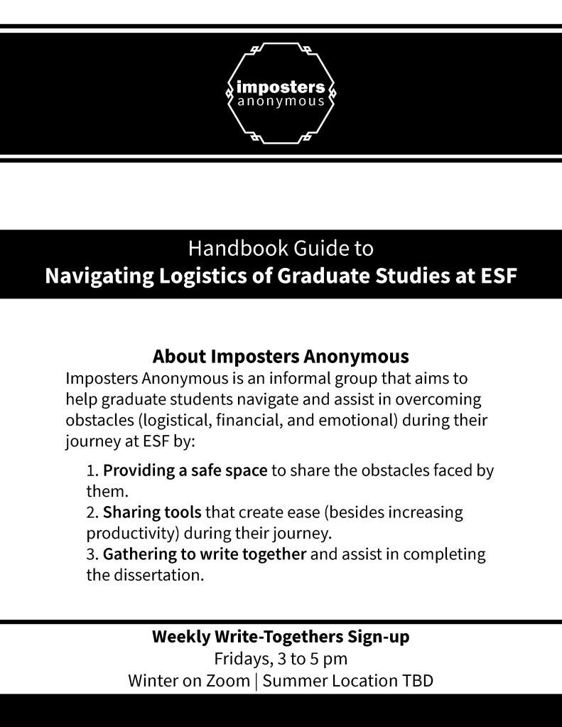 After identifying certain needs of graduate students not being fulfilled at ESF, I decided to create a short guide for them as a support tool that they may use or refer to if need arises. It started off as an independent personal project after I hosted backyard fire get togethers during the pandemic to have a physically distanced space to gather and have individual and group conversations.