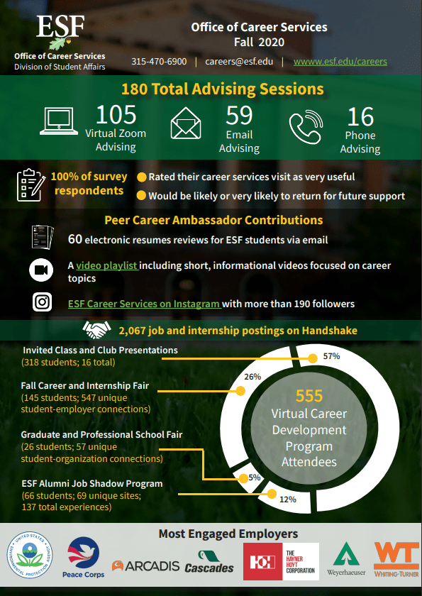 I also worked with the ESF Career Services to create marketing and design materials for their office which included reports, infographics, and templates.